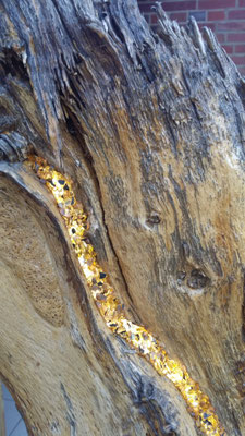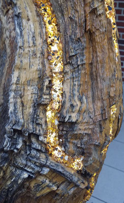 MYSTERIA - jahrhunderte alte Mooreiche mit blau leuchtendem Kristallglas.